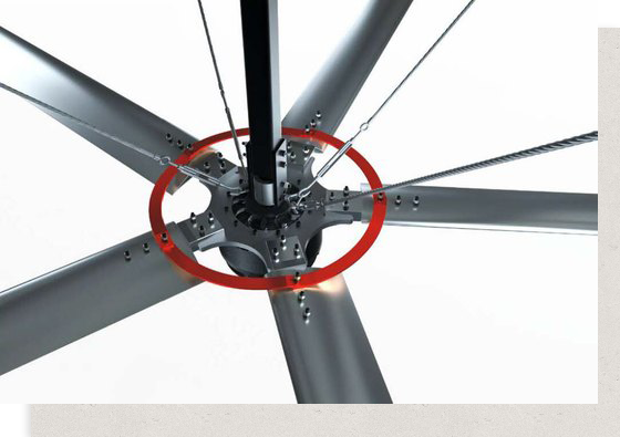 The High-Volume, Low-Speed (HVLS) fan is a high performance large fan.